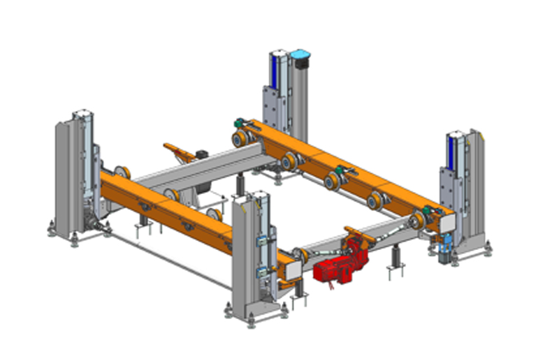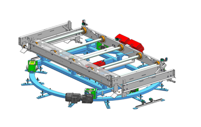 Composed by short roller bed, lifter, lifting table integrated with roller conveyor, and centric turntable